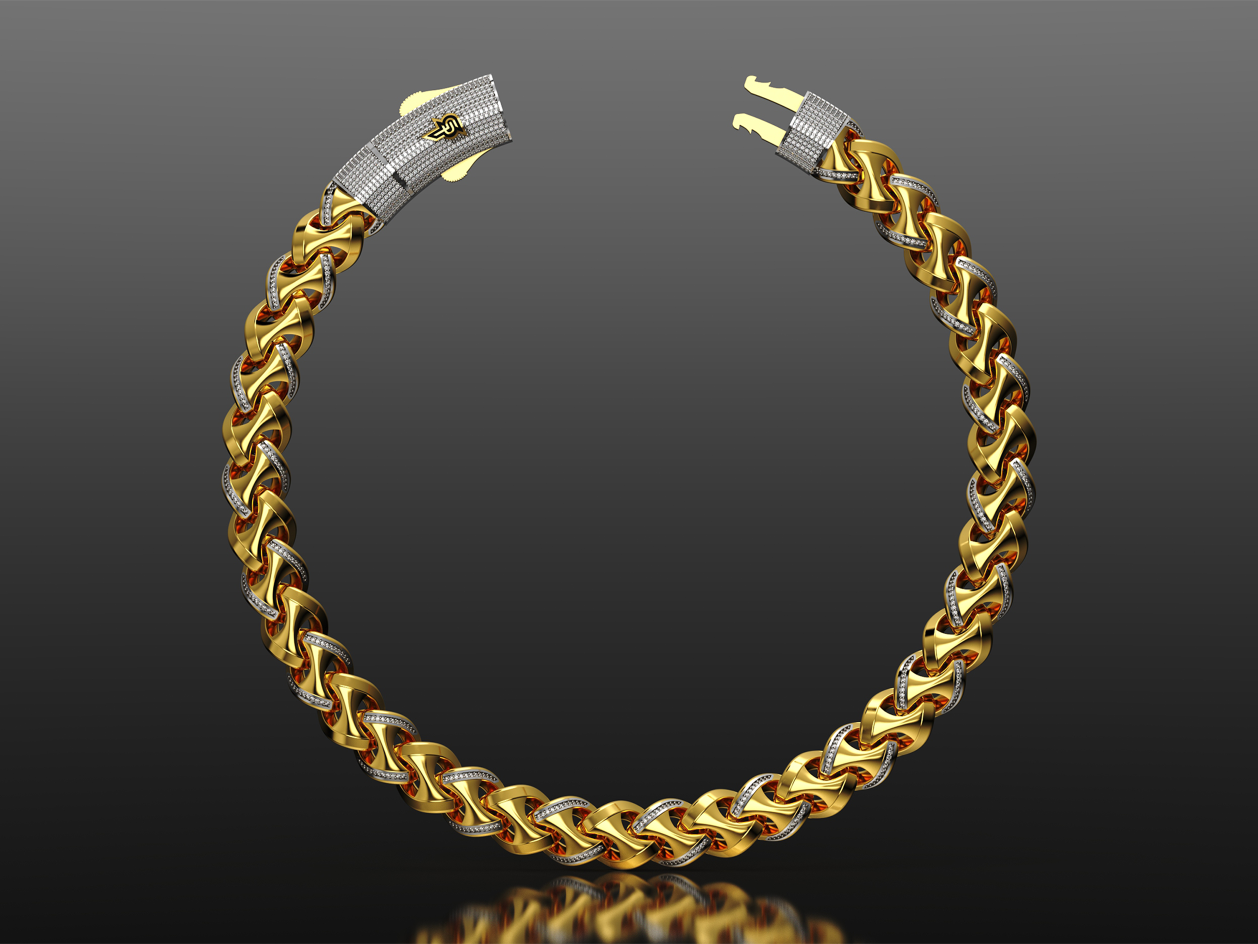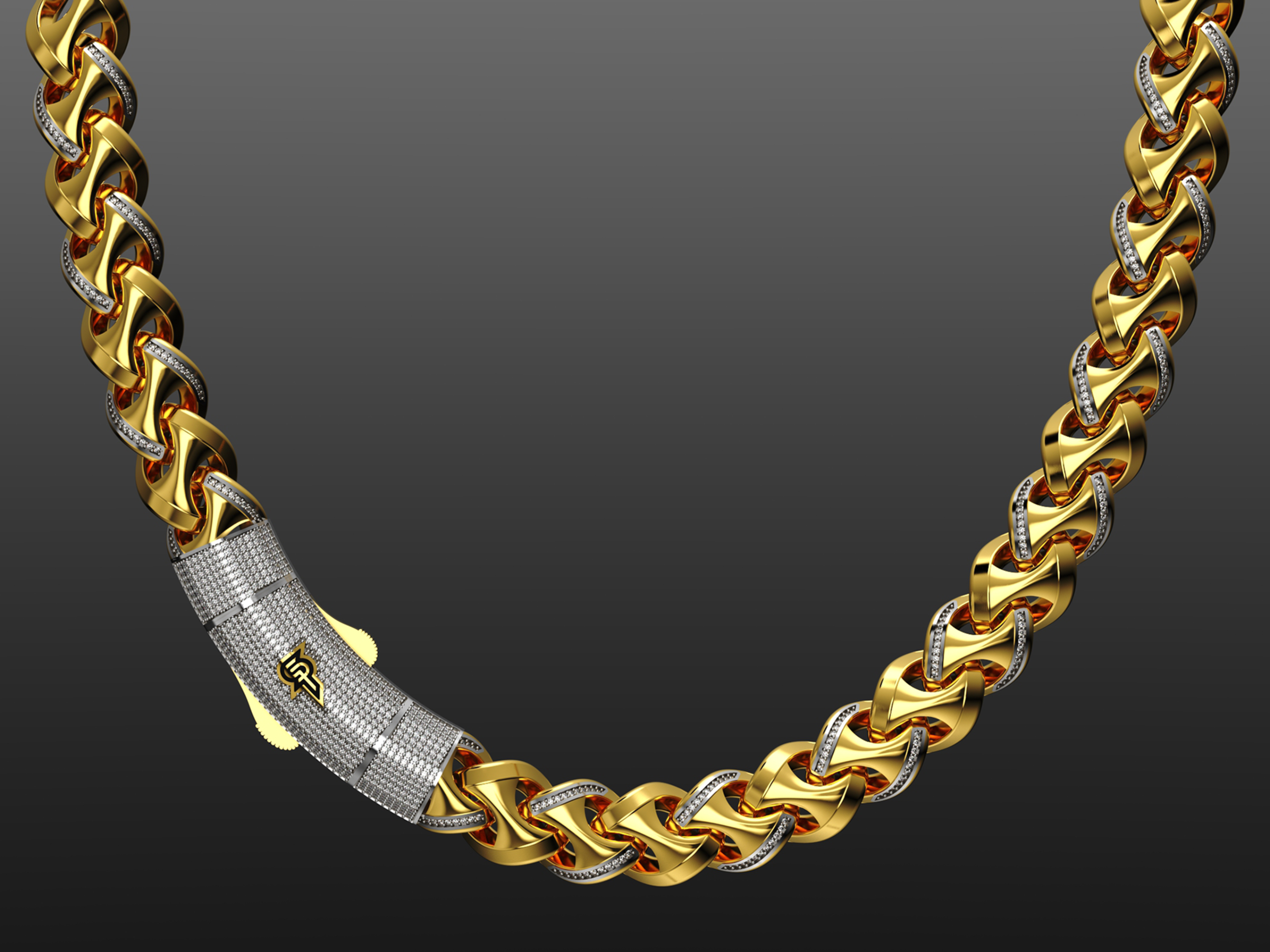 SilverPoint – 925 Silver Coffin Chain – PlaınXRay (18K Gold Plated White Rhodium )