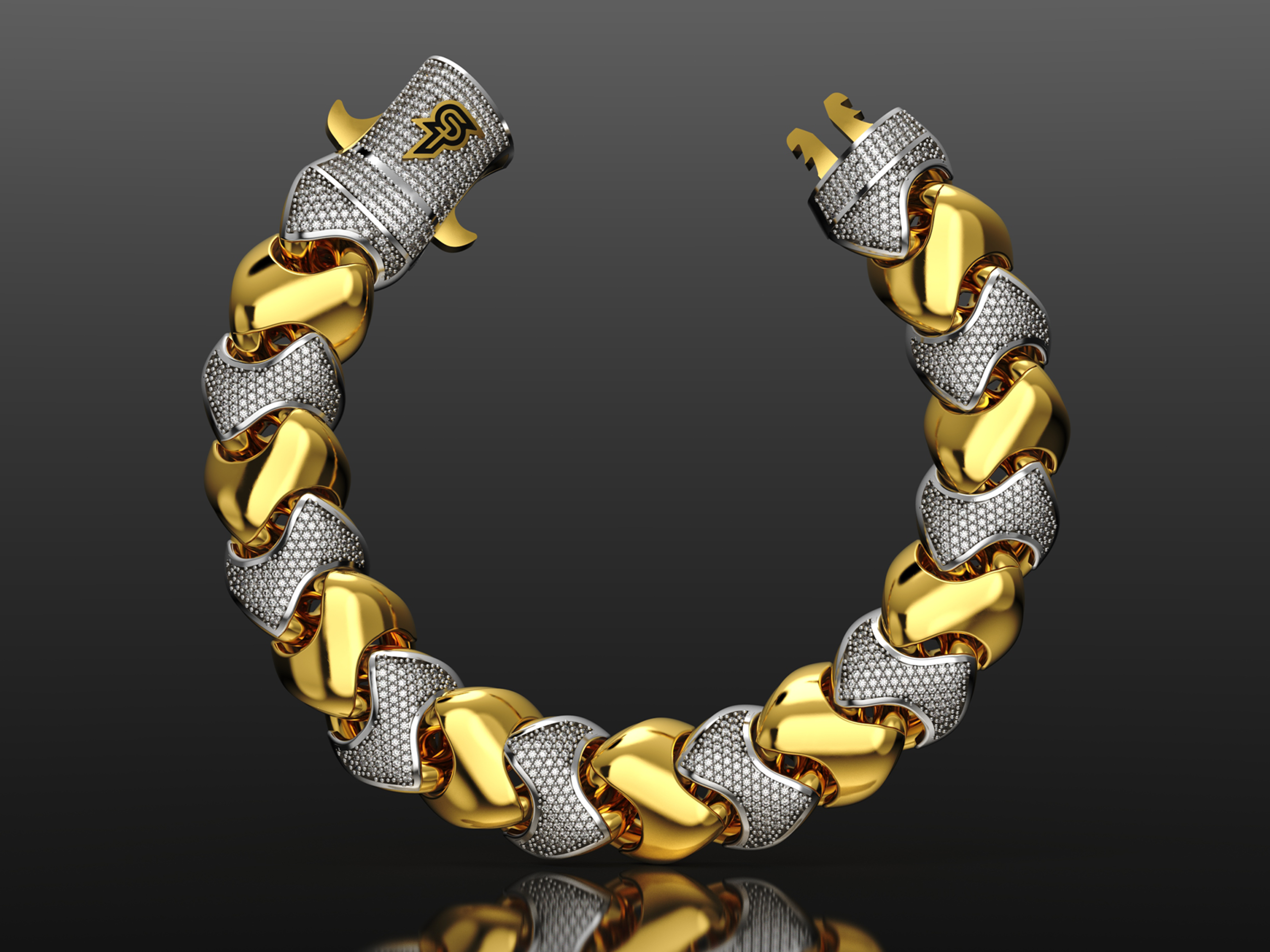 SilverPoint – 925 Silver Nova Bracelet – PlaınXRay (18K Gold Plated White Rhodium )